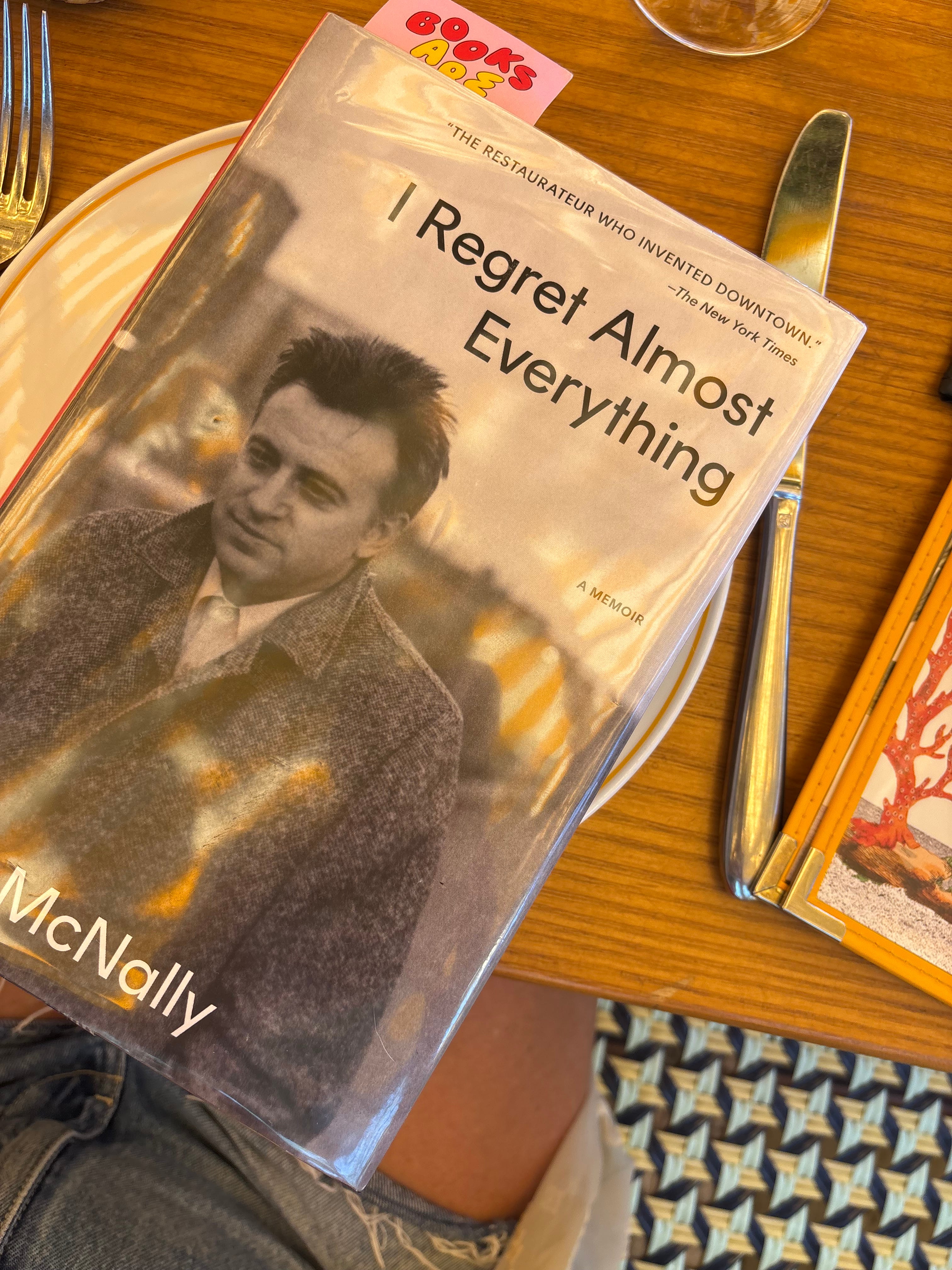 The host checked me in, not batting an eye when it was just me, and walked me up to a prime table for two up on the deck in a side-by-side banquette, where the space next to me remained empty. My kids were in camp, my mom was okay, and I felt an immense gratitude for being able to take myself out for such a nice meal. I had my Keith McNally memoir, it was the most beautiful day.