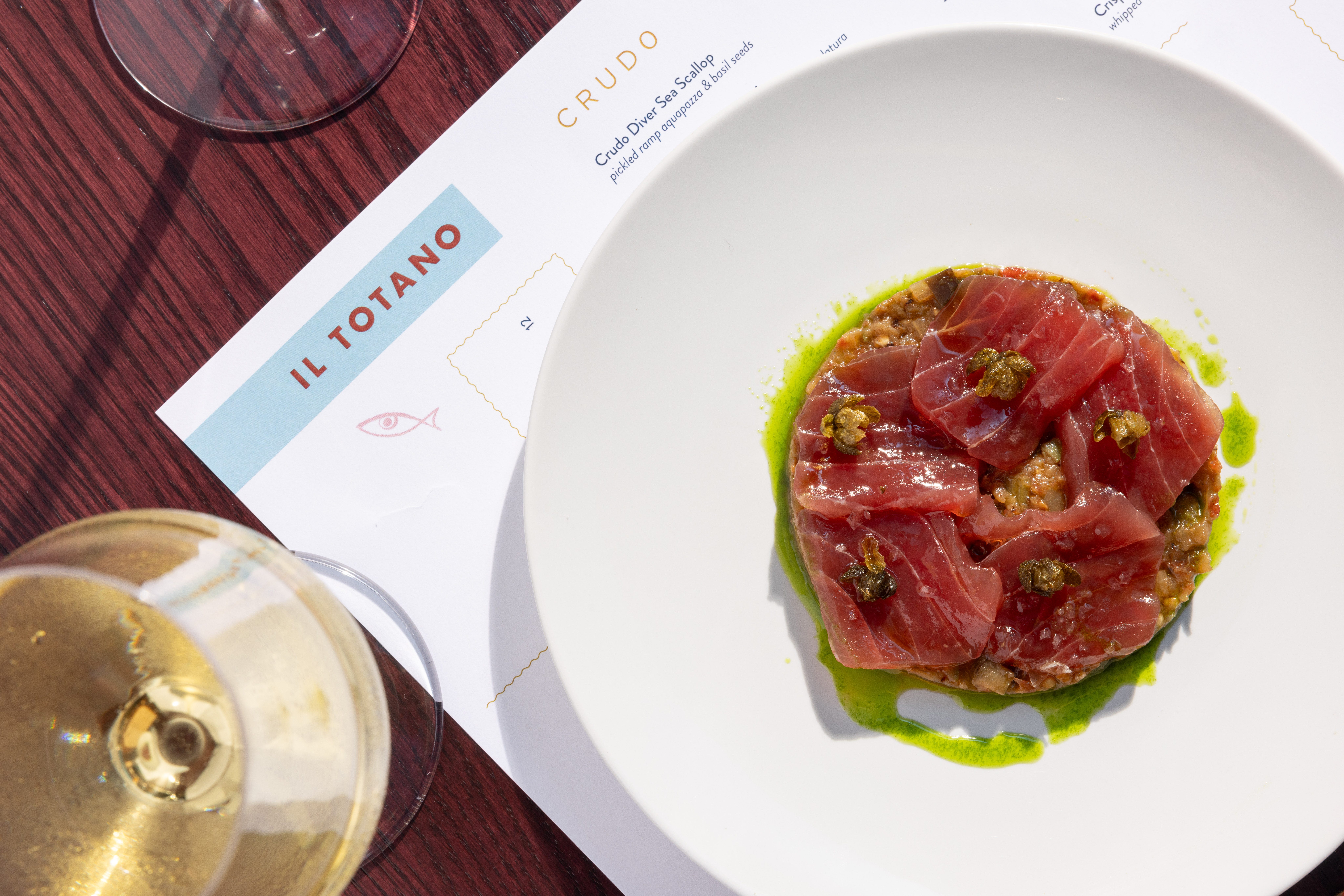 At Harold Dieterle’s Il Totano, which celebrates Southern Italy and the chef’s love of fish, crudo also takes the spotlight. His menu features four crudo every night, and you can just go and have those and a bottle of cold white wine from Sicily (a Grillo perhaps?) and forget that our democracy has been hijacked by the Supreme Court.